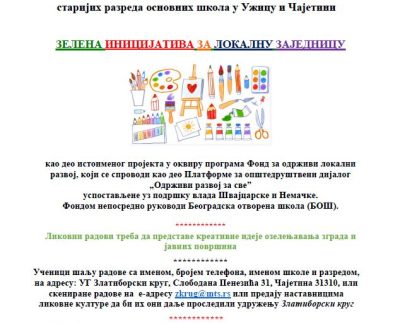 Likovni i literarni konkurs „Zelena inicijativa za lokalnu zajednicu“ za starije učenike osnovnih škola Užica i Čajetine