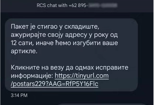 MUP Srbije upozorio je danas građane da, ukoliko dobiju SMS ili imejl poruku u kojoj se traži „ažuriranje“ ličnih podataka, zbog navodne isporuke ili isplate, ni u kom slučaju ne otvaraju linkove koji su navedeni u poruci niti na bilo koji način ne stupaju u komunikaciju sa pošiljaocima. MUP je u objavi na Instagramu pojasnio […]