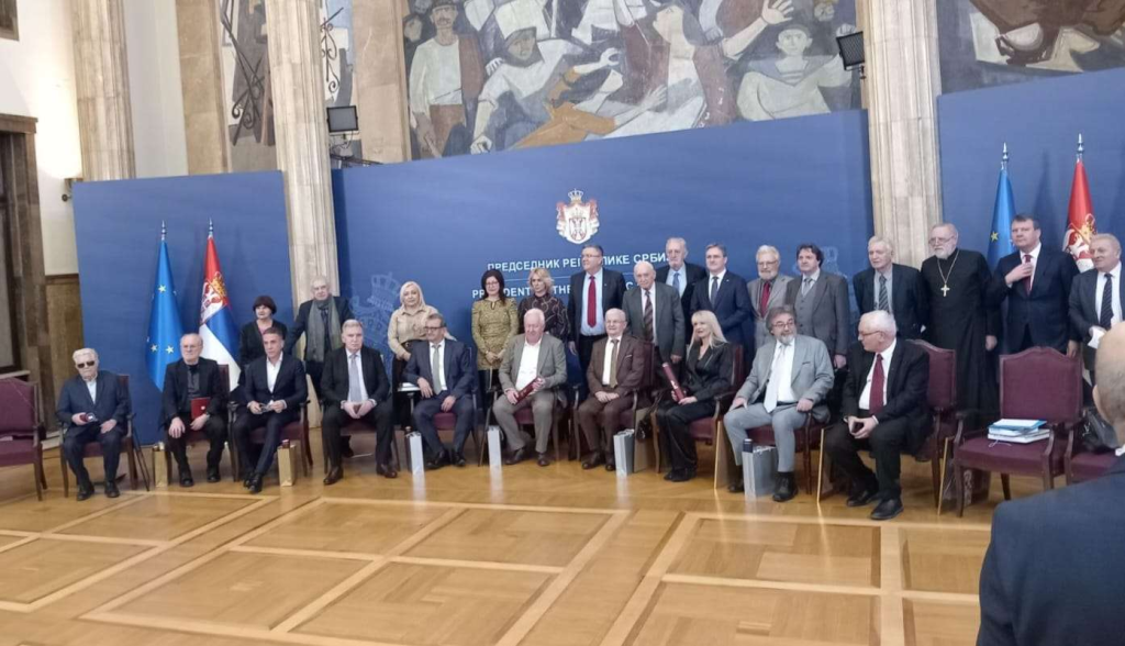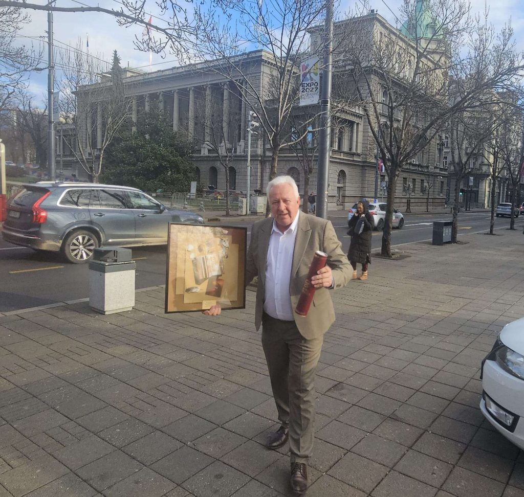 Gvozden Nikolić ispred zgrade Predsedništva Srbije nakon dodele nagrada, Foto: GZS